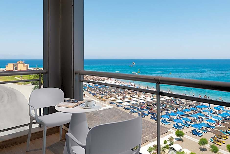 Spacious and elegantly furnished guest room with a partial view of the Aquarium beach and the Aegean Sea. Rooms have a city view / partial sea view only in high floors